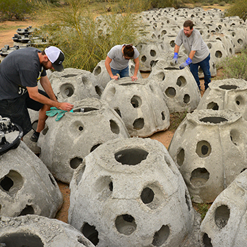 The Arizona Game and Fish Department’s Aquatic Habitat Program conducts habitat surveys in reservoirs, assesses structural habitat availability, and designs and implements fish habitat projects to improve reservoir fish habitats. Installation of structural habitat improvements involves material acquisition (purchased or donated), construction and transportation of structures and materials to the lakes, and final assembly and transport by boat and sinking of the structures at pre-determined locations in the lake.