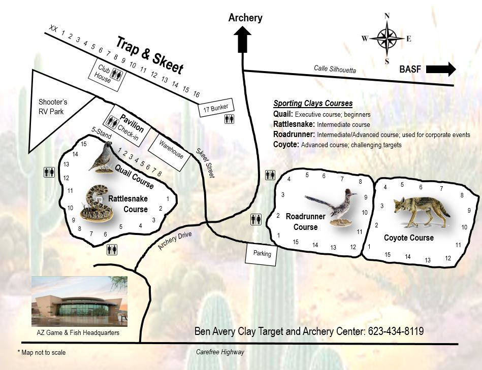 The Ben Avery Clay Target Center is a professionally managed public shotgun-shooting facility in north Phoenix offering games such as trap, skeet and sporting clays. Fun for the whole family! It is also the check-in point for the Ben Avery outdoor archery ranges. BASF operation guidelines
