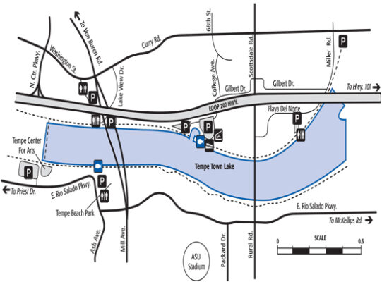 Swimming, wading, glass containers, and littering are prohibited. Alcoholic beverage permits required. City of Tempe annual boating permit required (call (480-350-5200). Must have proper floatation devices on board. Powerboats restricted to single electric motor. All boats operating after dark and before sunrise are required to have lights on. Other rules as posted.